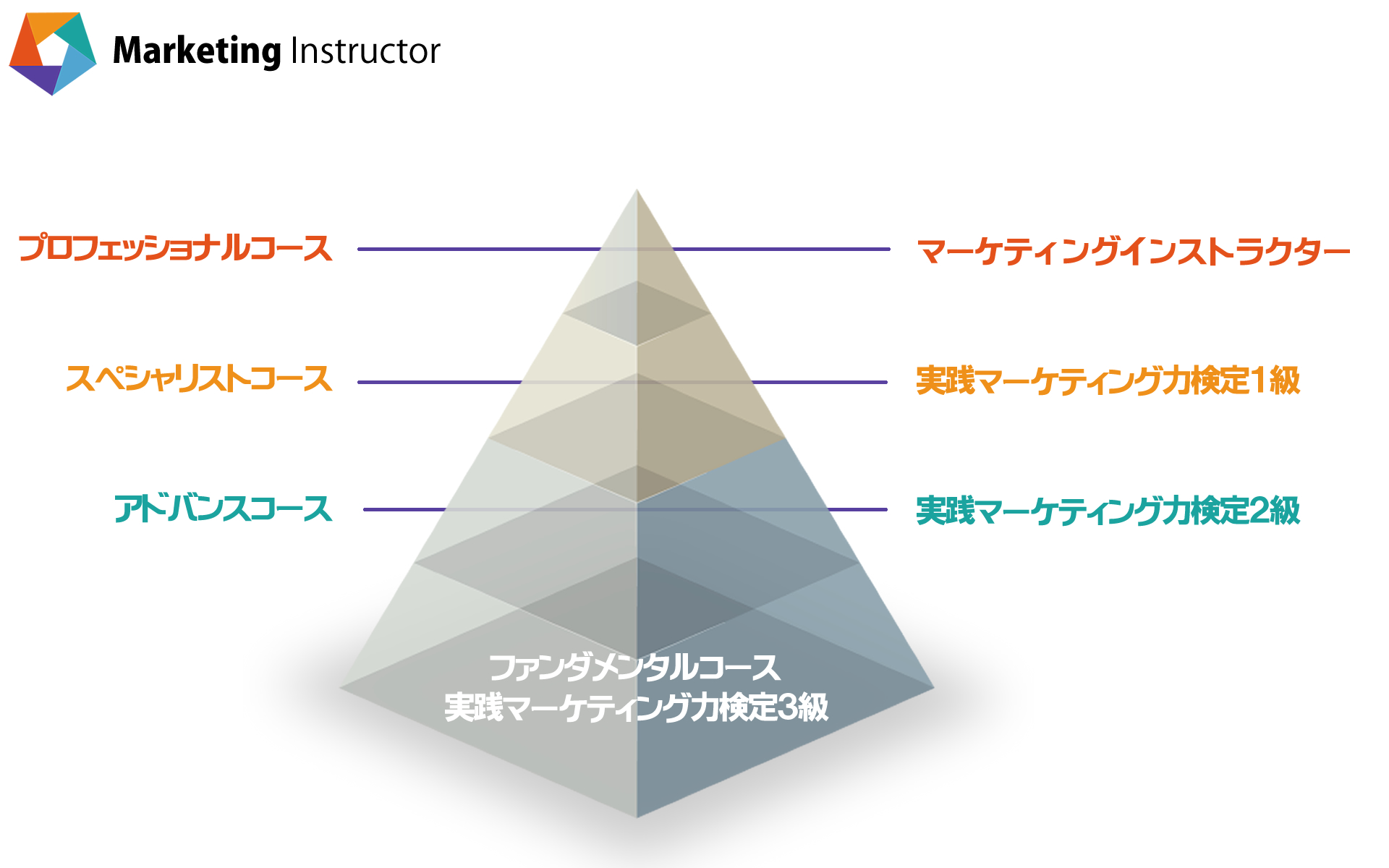 実践マーケティングオンラインスクールでは4つのステップアップコースで学べます。マーケティングの実戦現場で生かせる基礎知識からプロとして活躍できる知識まで、あなたのステップアップをサポートします。